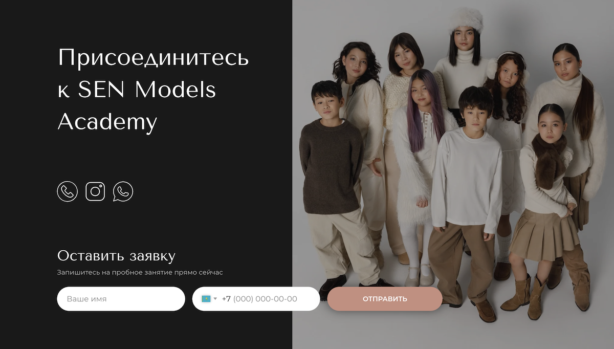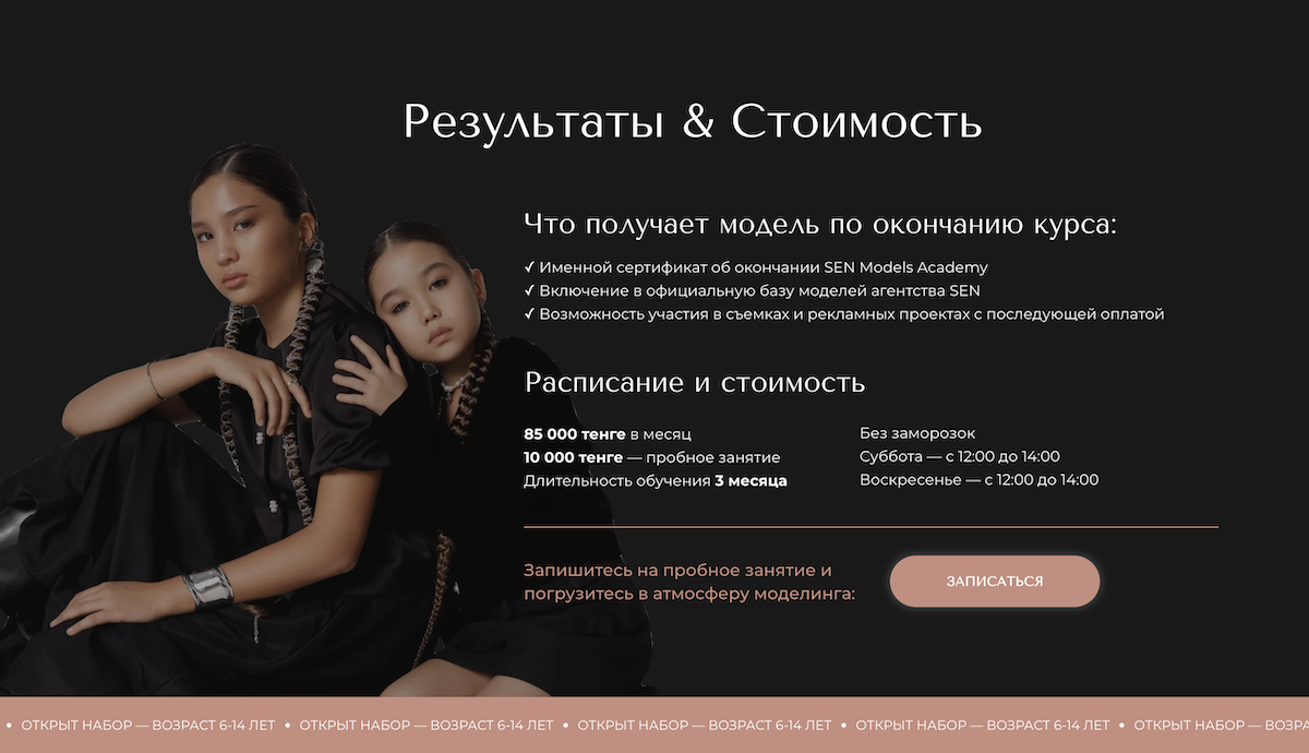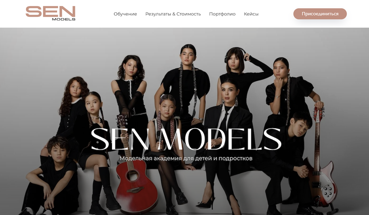SenModels — образовательный проект в сфере моделинга для детей и подростков, запущенный группой компаний Sen Studio, с которой мы сотрудничаем с 2023 года. В рамках расширения направления клиент обратился с задачей разработки лендинга для привлечения новых учеников и презентации школы моделинга.