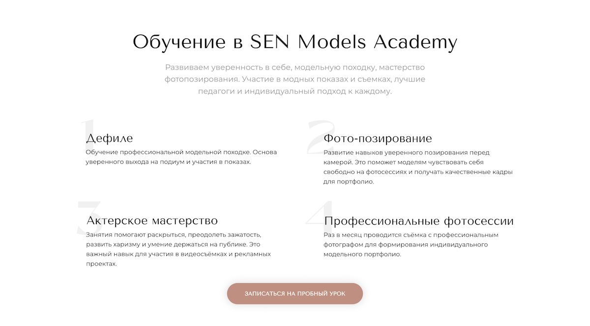 Создание лендинга для модельной школы SenModels