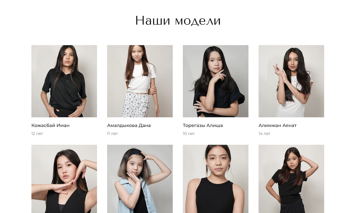 Лендинг отличается лаконичным, чистым и современным дизайном, с акцентом на визуал и эмоциональное восприятие, что особенно важно для ниши моделинга и работы с детской аудиторией.